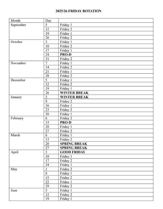 Timetable and Bell Schedule For class schedules, please log in to the MyEd portal to view your schedule (Links > MyEd above, or select "Request an account" on the login page if you've never registered).